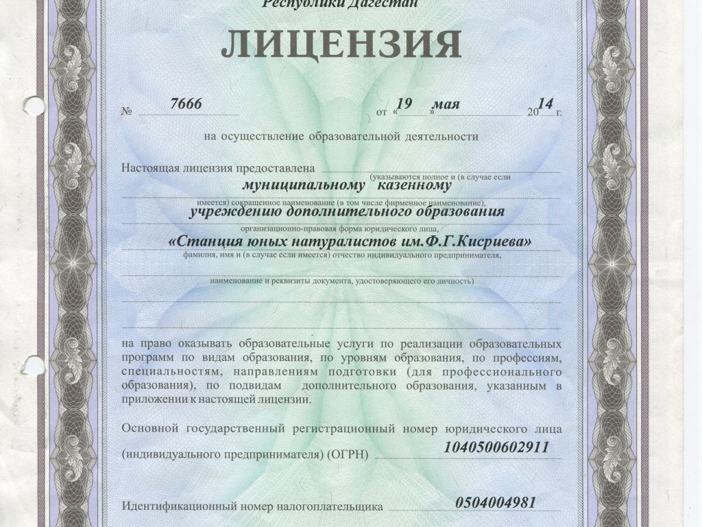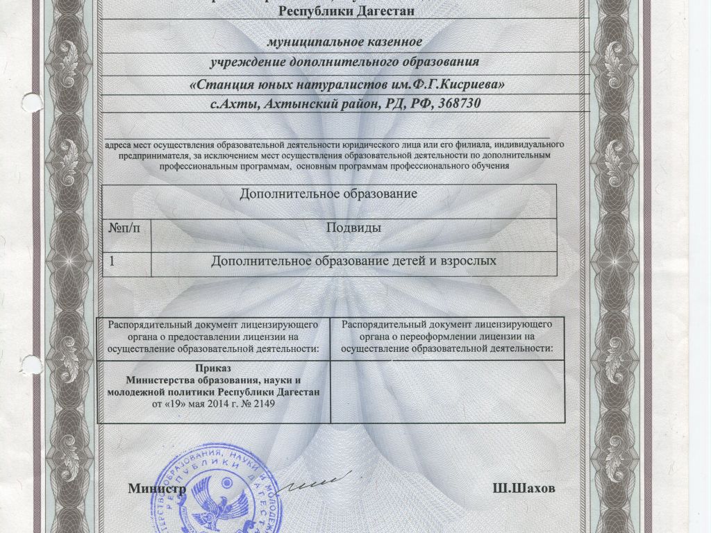 | Полное наименование образовательной организации* | Муниципальное Бюджетное учреждение дополнительного образования " Станция юных натуралистов" им. Ф.Г. Кисриева. |